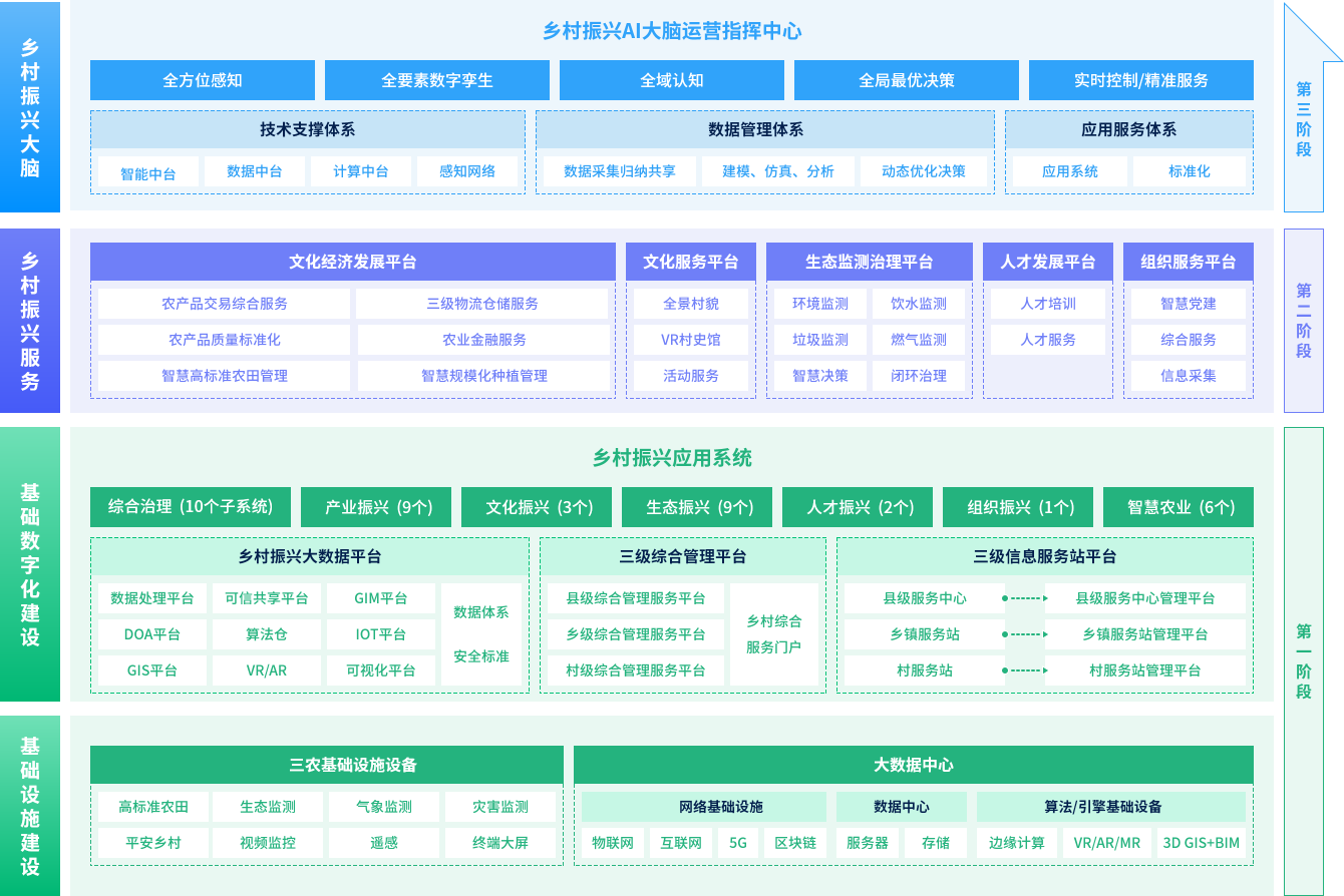 以鄉村治理和產業振興為核心的數據智能能力,搭建鄉村振興AI大腦運營指揮中心,進一步實現統籌管理