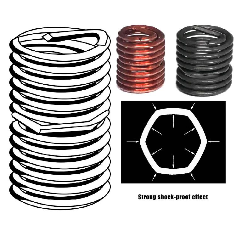 自鎖型具有和普通型螺套相同的技術優點;此外,其內部設計有一個螺紋鎖定區域,通過一匝或多匝多邊形線圈固定住安裝螺絲螺紋,來實現螺絲的鎖定。這種方式所形成的鎖緊力矩可符合 DIN267 第 15 部分 ISO2320 的中各類規格的標準,同時也能適用于解決某些特殊問題。自鎖型螺套可以著紅色。